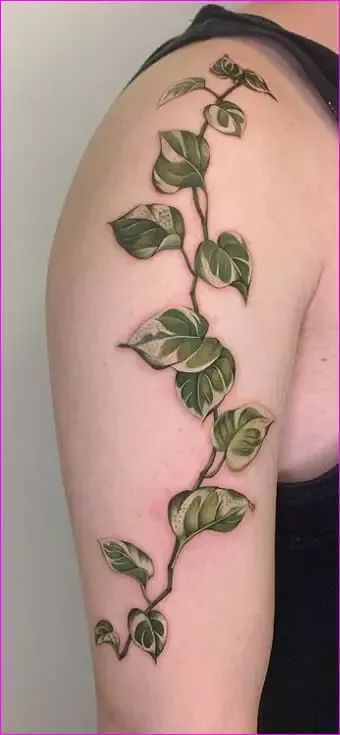 If you want a tattoo that reflects personality and confidence, vibrant Green Design vines like this offer plenty of inspiration. The bold color makes the arm placement especially noticeable, turning this style into one of the more expressive ivy Ideas you can try.
