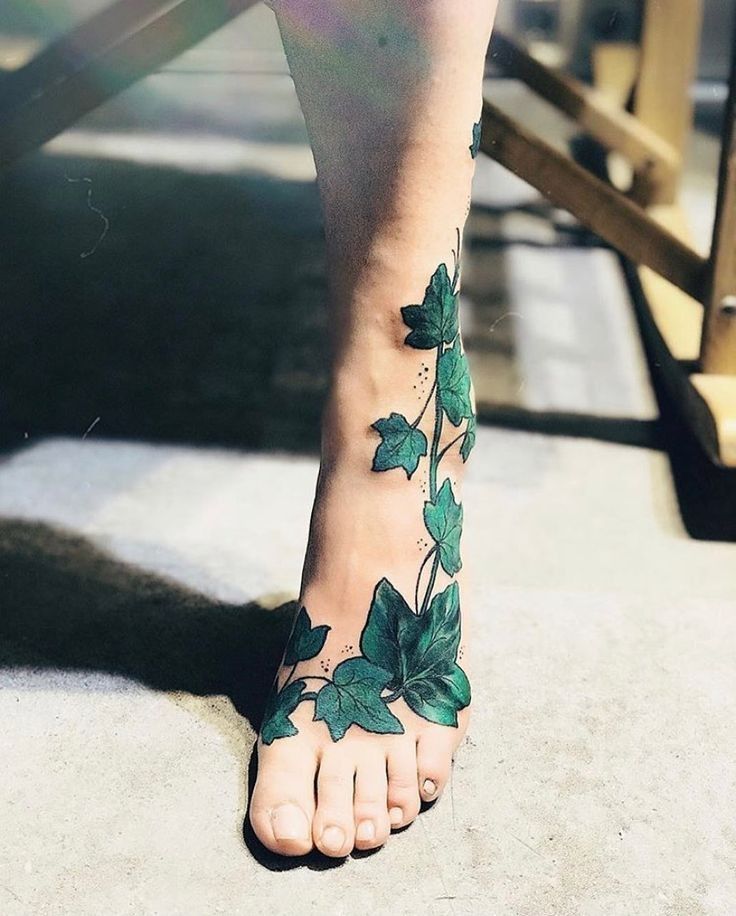 This flowing Green ivy Design vines concept works especially well along the lower Leg and foot. The graceful vines create movement and balance, making it a striking option for women who want botanical ivy Ideas that feel distinctive.