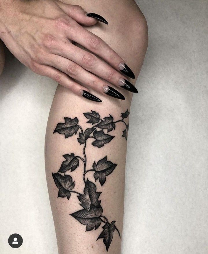 Unlike softer botanical work, this Black ivy Design stands out with dramatic contrast and structure. The dense shading makes the vines ideal for a statement piece on the Leg, especially if you want something bolder than a typical Fine line tattoo while still keeping a botanical theme.