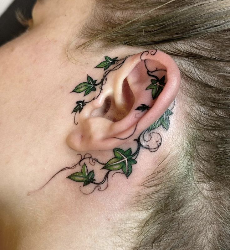 This tiny ivy arrangement feels almost magical, curling around the ear like a living piece of jewelry. It has that whimsical charm that makes it feel personal and artistic, as if the ivy is quietly growing along the natural lines of the face. It’s delicate but unforgettable in the best possible way.