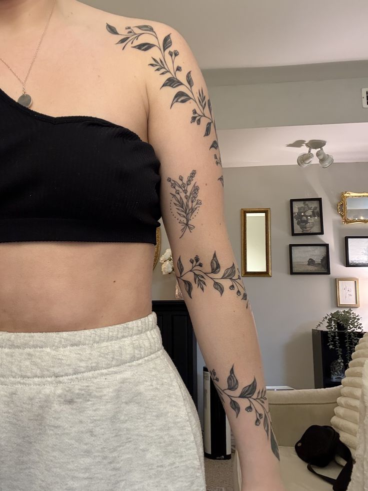 The real charm of this Design vines layout is how naturally it fits the arm. The flowing vines for women can easily expand into a partial Sleeve, making it a flexible choice if you plan to build a larger botanical Design later on.