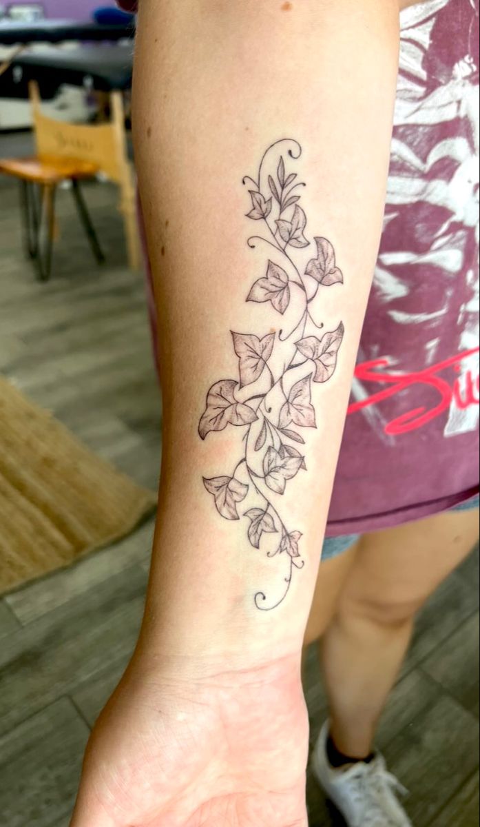 This Fine line Design feels especially inspiring if you want something meaningful and artistic. The slender Climbing vines make the arm placement look elegant, turning one of the more creative ivy Ideas into a design that feels deeply individual.