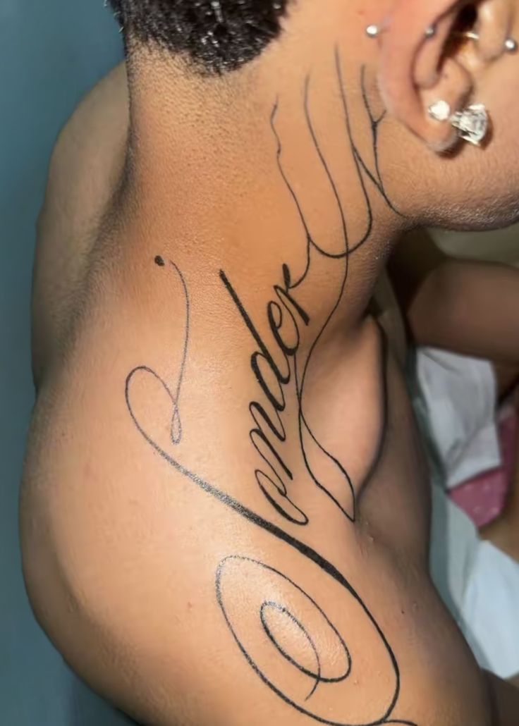 There’s undeniable confidence in placing sonder along the neck and shoulder. The sweeping script feels sensual and strong at the same time, following the natural lines of the body like it was always meant to be there. It’s expressive without trying too hard.
