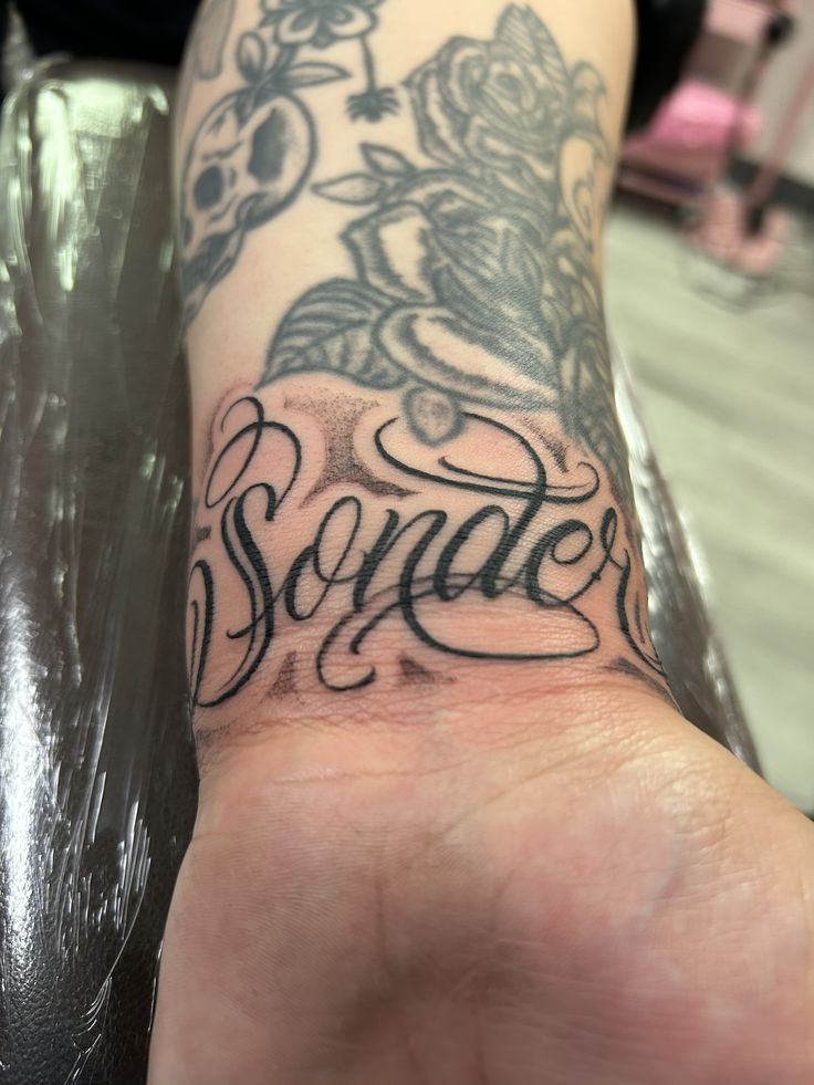 This version of Sonder feels grounded and direct, almost editorial in its clarity. The straight alignment and balanced spacing give it a modern confidence—not loud, not shy, just sure of itself. It’s the kind of tattoo that doesn’t need explaining, yet invites conversation when someone finally notices it.