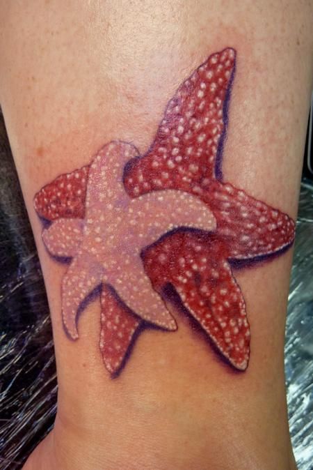 12. Layered Red Starfish Duo Tattoo