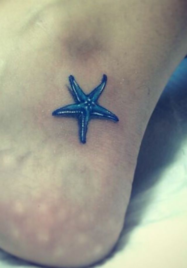 13. Tiny Blue Heel Starfish Tattoo