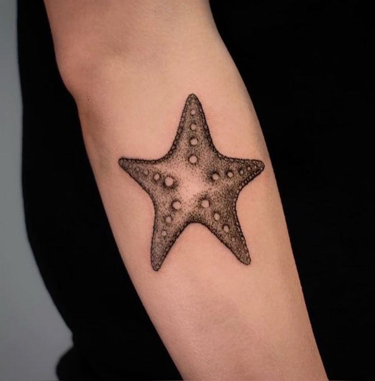 6. Detailed Arm Starfish Tattoo with Ocean Texture