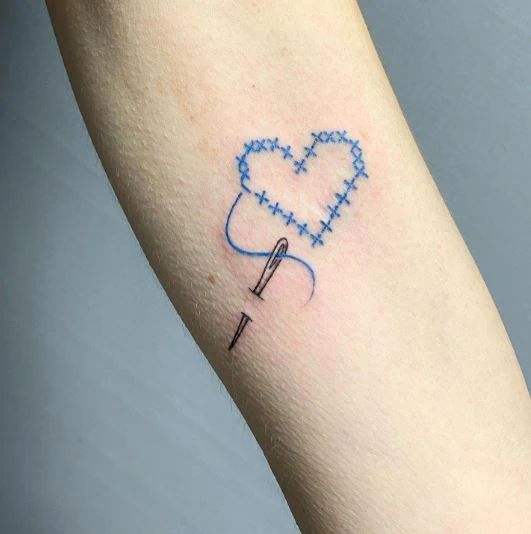 16. Stitched Heart and Needle Design
