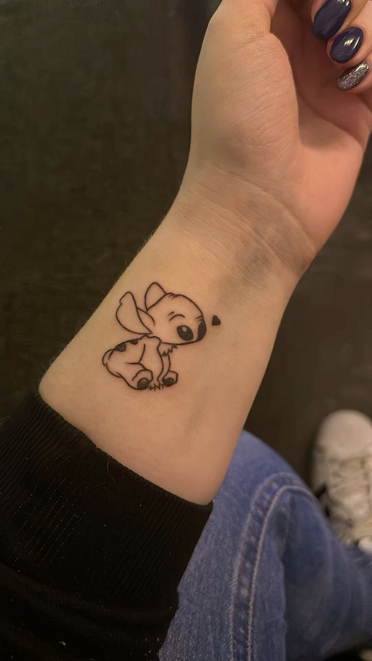 There’s something so effortlessly charming about this tiny Stitch—it feels like a quiet little companion sitting on your wrist. The simplicity of the lines gives it a soft, almost delicate personality, making it feel more like a whisper than a statement.