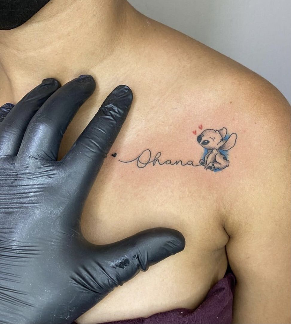 If you’re drawn to meaningful ink, this Ohana lilo inspired tattoo is perfect for the neck or collarbone area. It works especially well as a Simple yet expressive option—something that doesn’t overwhelm your style but still carries a deep story every time you catch a glimpse of it.