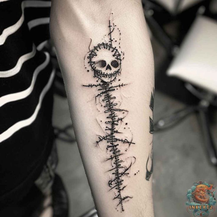 18. Stitched Skeleton Figure Tattoo