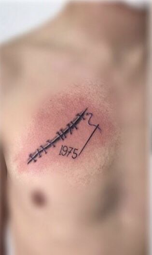 This one feels deeply symbolic—like a moment in time that left a mark, both literally and emotionally. The stitched line paired with a date creates a quiet but powerful statement, almost like something healed but never forgotten. It’s subtle, but it carries weight in a way that doesn’t need explanation.