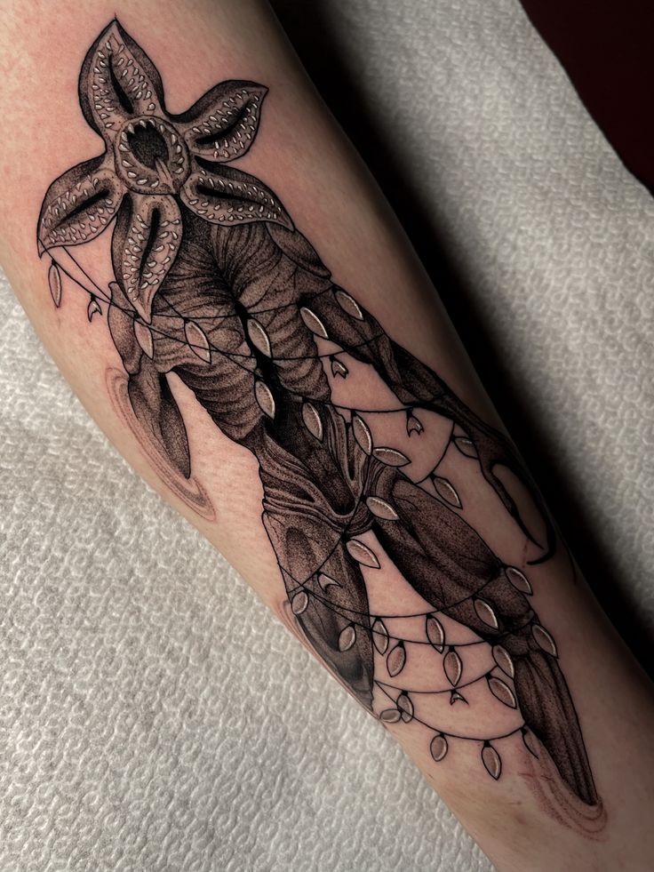 Best for experienced tattoo collectors, this piece requires commitment and a skilled artist. It’s ideal if you love high-impact designs and want Stranger Things tattoo ideas that fully transform your arm into a storytelling canvas.