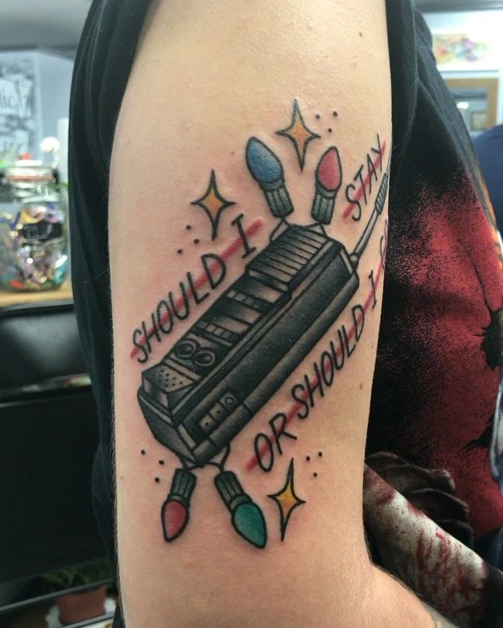 This tattoo feels fun, cheeky, and full of personality. The Walkman paired with a quote brings humor into the Stranger Things universe, reminding us that even in chaos, there’s room for choice and individuality. It feels lighthearted and rebellious all at once.