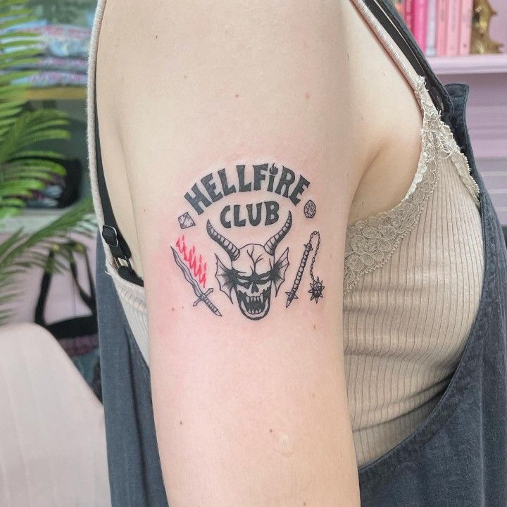 Bold, rebellious, and a little nostalgic, this tattoo screams Eddie without needing his face. The Hellfire Club symbol is instantly recognizable and packed with attitude. It’s for those who loved the chaos, the music, and the heart Eddie brought to the show.