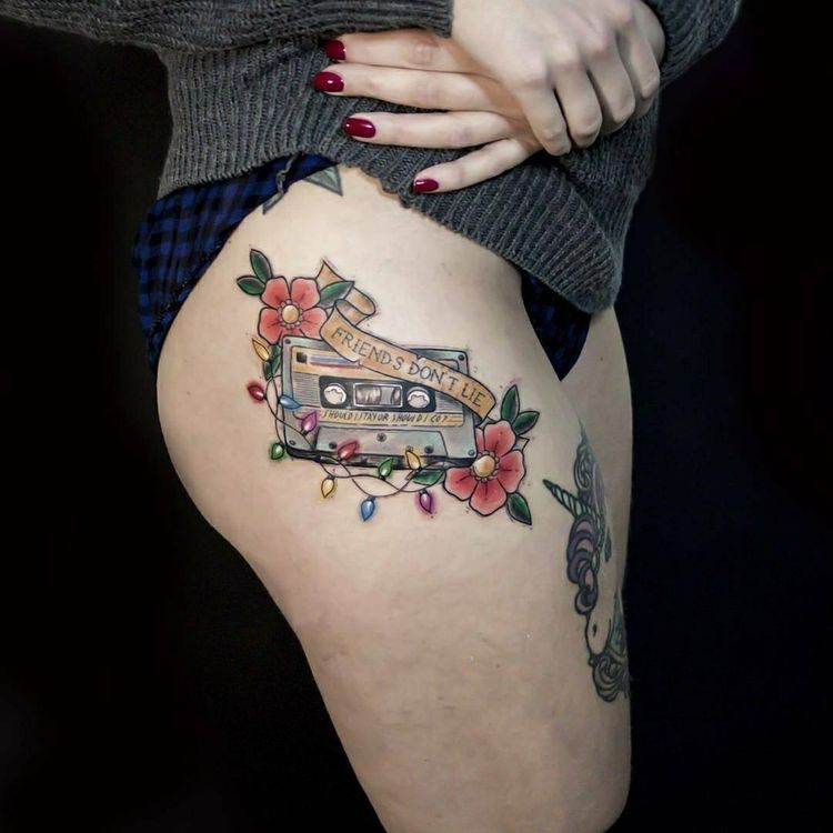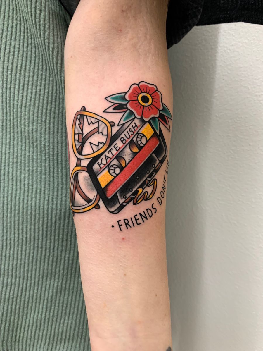 21. Friends Don’t Lie Floral Cassette Tattoo