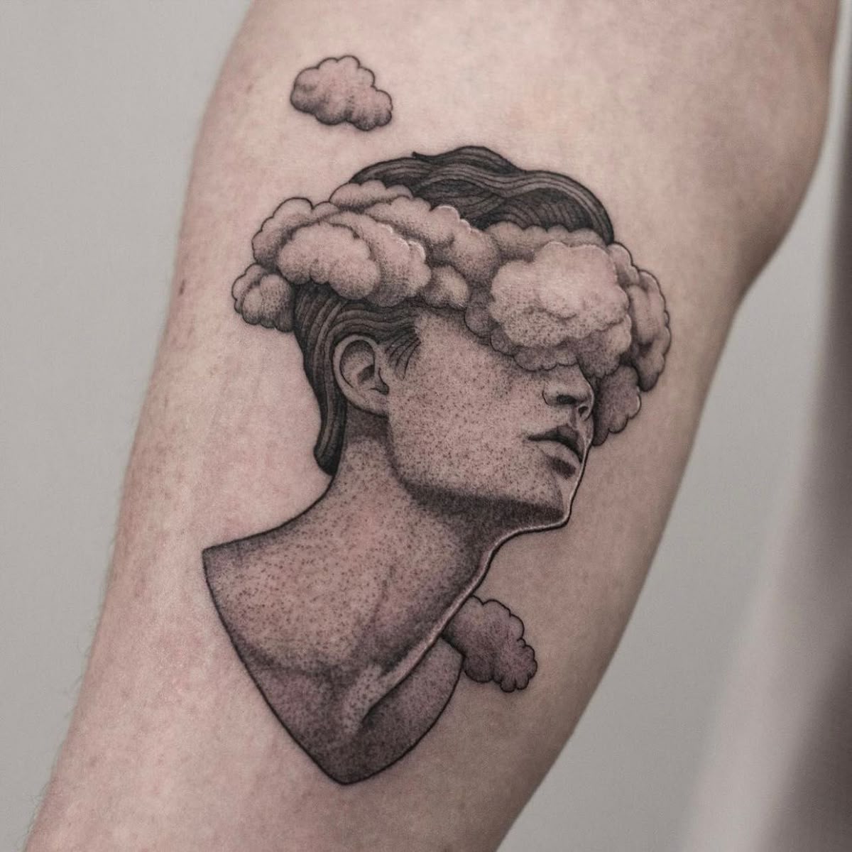 If you have been craving a tattoo that feels more personal than decorative, this is such a strong direction to try now. Portrait-based designs like this suit people who love expressive styles and want their ink to say something without spelling it out. The forearm or calf placement gives the bust enough length to breathe, and the soft grey techniques help the design stay sophisticated rather than overly dramatic. Choose an artist with a light hand and real control over smooth realism, because that is what keeps the face, the Cloud, and the open Background feeling seamless. It is the kind of tattoo that does not just sit on the skin; it changes the atmosphere around it.
