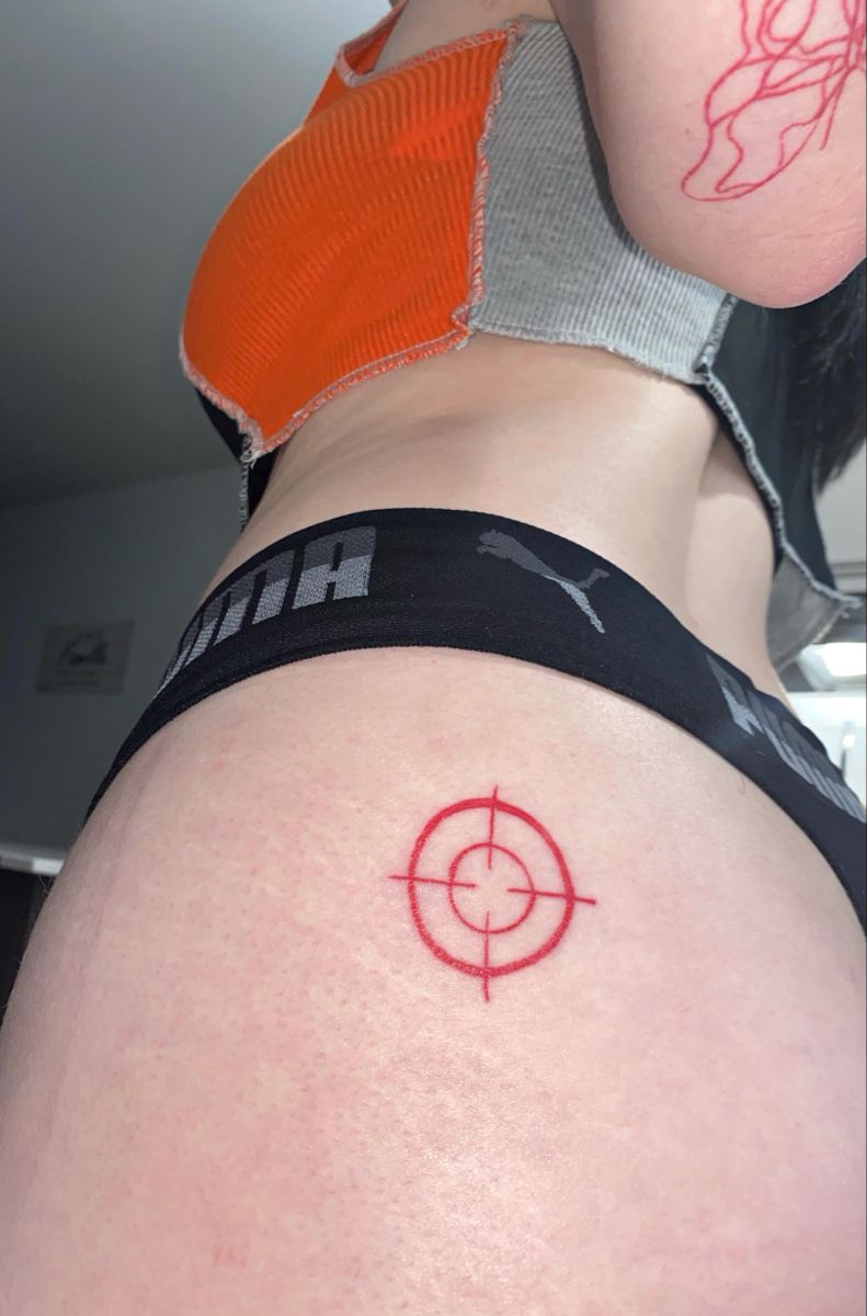 A red target on the hip is the kind of Y2K idea that feels cheeky, confident, and a little bit Trashy in that intentionally iconic way. It’s minimal, but it still has attitude—like a tiny piece of pop-culture rebellion you decided to keep forever. The placement makes it feel private until you want it to be seen, which gives it that extra “I’m in control of the vibe” energy.