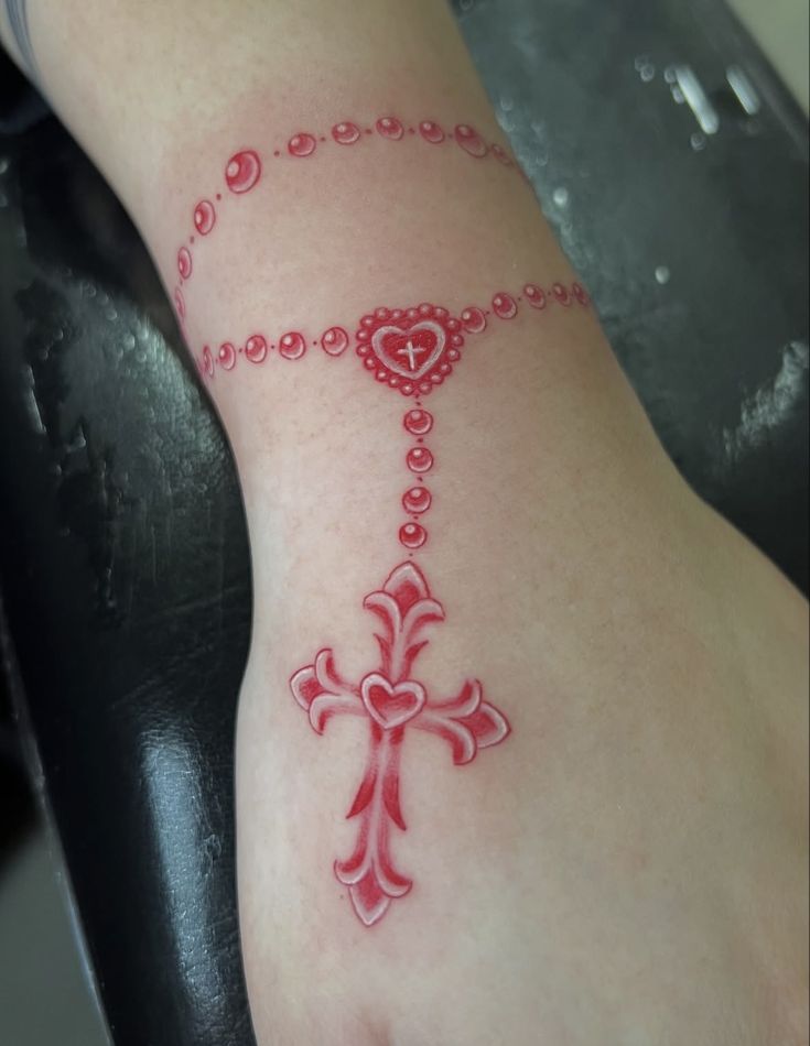 17. Red Rosary Cruz Tattoo