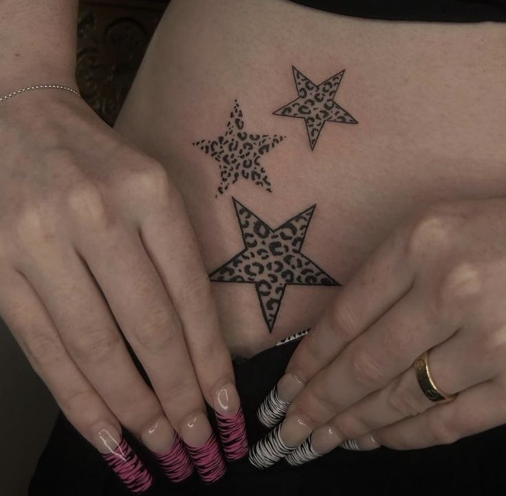 Leopard print inside stars is basically the Y2K personality in tattoo form: bold, flirty, and a little Trashy in that totally self-aware way. The placement makes it feel like a secret accessory—it’s there for you until you decide to show it. These Y2K tattoo ideas have that “late-night confidence” energy that never really goes out of style.