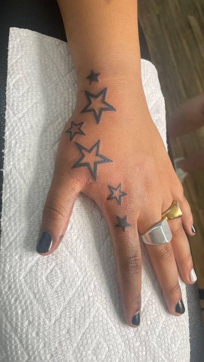 Styling tips: hand tattoos fade faster, so choose a clean Star outline that can be easily touched up. This is also a great hand option if you want something small but expressive. It pairs perfectly with rings and a glossy manicure, and it looks especially cool when the stars are spaced to follow the natural lines of the hand.