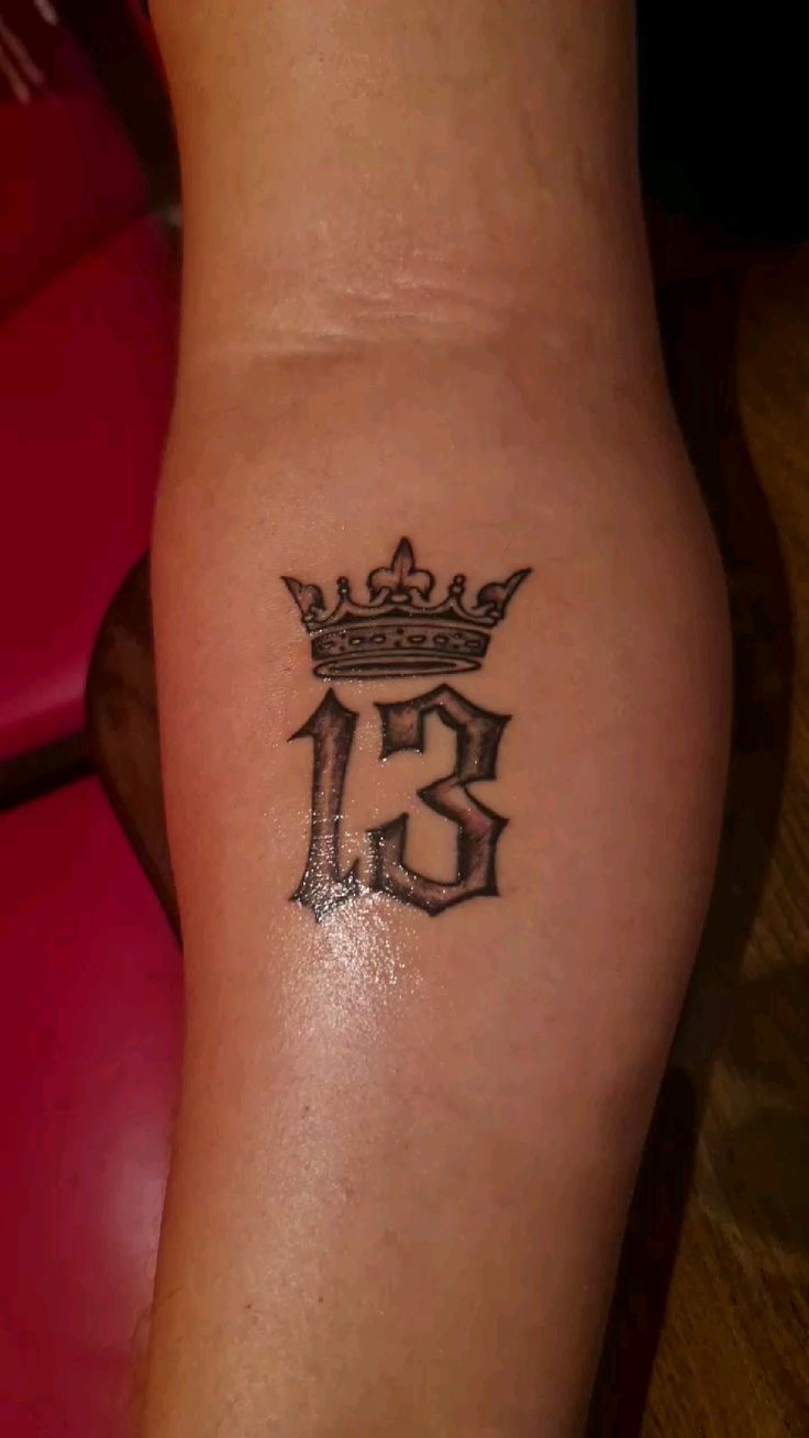Putting a crown above 13 changes the entire attitude of the tattoo. Suddenly the number feels confident, elevated, and full of self-belief, as if it were not something to fear at all but something to claim. There is a nice contrast here between the sharp gothic structure of the digits and the more symbolic royal detail above them. That contrast gives the piece a bolder personality without making it feel overly complicated. It is the kind of tattoo that says you know your own story, you know your own power, and you are no longer apologizing for either.