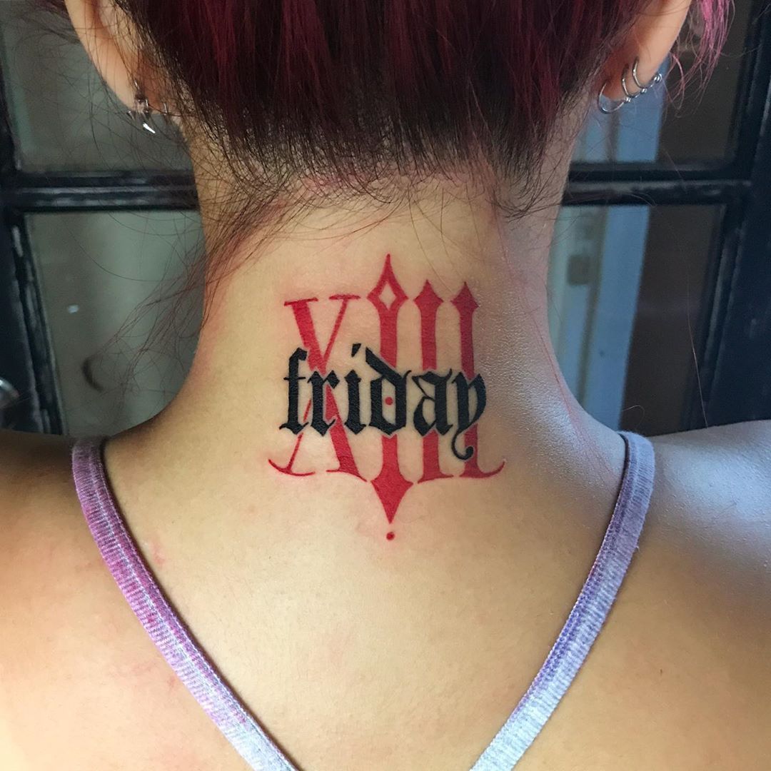 This is very much for the person who wants their tattoo to mean something and be seen. If Friday has personal meaning for you, or if XIII feels stronger than a standard 13, this layered approach gives the idea more depth and drama. It works especially well on the back of the neck because the vertical placement supports the lettering and lets the contrast stand out. Think of it as a fashion-forward upgrade on more minimal number ideas, especially if your taste leans gothic, expressive, and a little unapologetically intense.