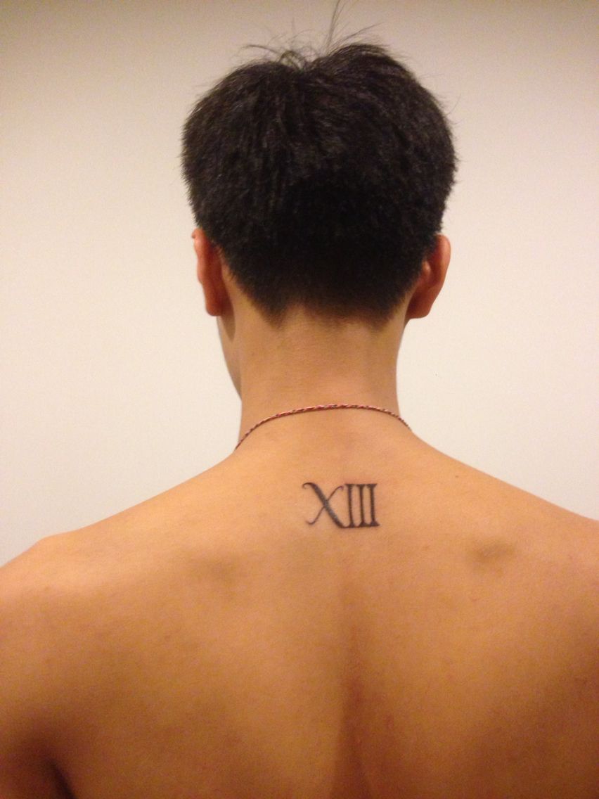 A roman numeral 13 tattoo has a completely different mood from a standard number, and this one proves it. XIII across the upper back feels elegant, private, and a little cinematic, like something chosen with care rather than on impulse. It does not shout, but it absolutely stays with you. The placement near the nape adds a quiet sensuality too, especially when the tattoo peeks out from under a collar, a tank top, or an open-back look. It is subtle, but it carries real presence.