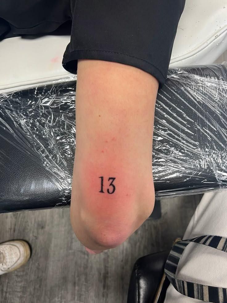 This tiny 13 proves that a tattoo does not need size to have an impact. There is something charming about how direct it is, almost like a secret written on the body in the smallest possible voice. It feels young, cool, and very current, especially for people who want ink that slips effortlessly into everyday life. Instead of dominating the look, it becomes one of those details that makes your style feel intentional, like a favorite ring or a signature scent that only the right people notice.