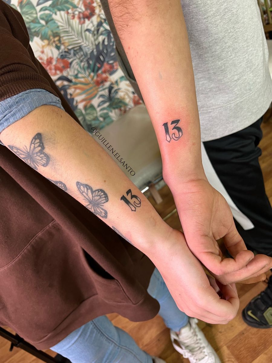 Matching 13 tattoos have a sweetness to them that does not feel overly sentimental. These feel cool, modern, and intimate, like a shared reference only two people fully understand. Because the designs are identical and placed in similar spots, the overall effect is strong but still soft. There is no big speech here, just a quiet sense of connection. That is exactly why it works. It feels real, not performative, and that makes it stylish in a way that lasts longer than trends usually do.