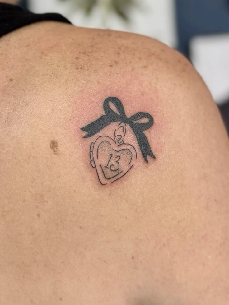 This design feels like a secret with a satin ribbon tied around it. A 13 tucked inside a heart-shaped locket has a romantic, nostalgic pull that makes the tattoo feel deeply personal, almost like a keepsake from another era. It is sweet without being childish and sentimental without becoming too obvious. That balance is what makes it so charming. It suggests memory, attachment, and a story that matters, whether the number connects to a person, a turning point, or simply a part of yourself you wanted to hold onto.