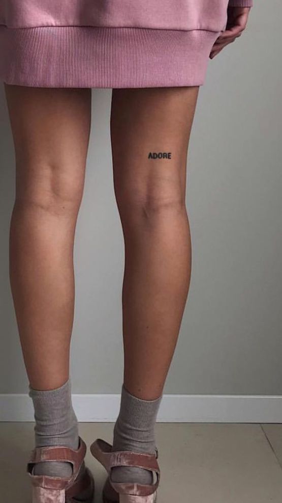 One small word placed subtly on the back of the thigh can feel incredibly powerful. It’s understated—almost invisible at first glance—but once noticed, it lingers. This kind of minimal approach feels modern, clean, and deeply intentional.