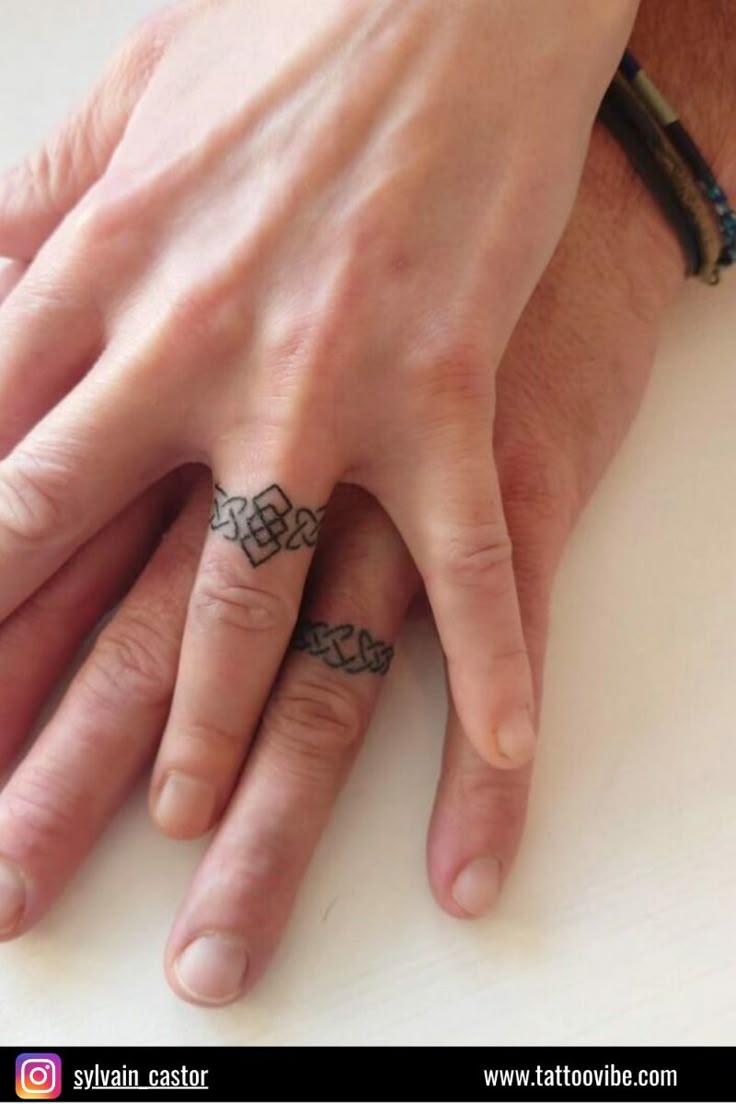 These delicate knot ring tattoos feel beautifully intimate—like a quiet promise woven directly onto your skin. The design is subtle but full of meaning, especially for partners who want something symbolic without going for a traditional band. There’s a lovely softness in how the knots wrap around each finger, creating a sense of unity without being too matchy.