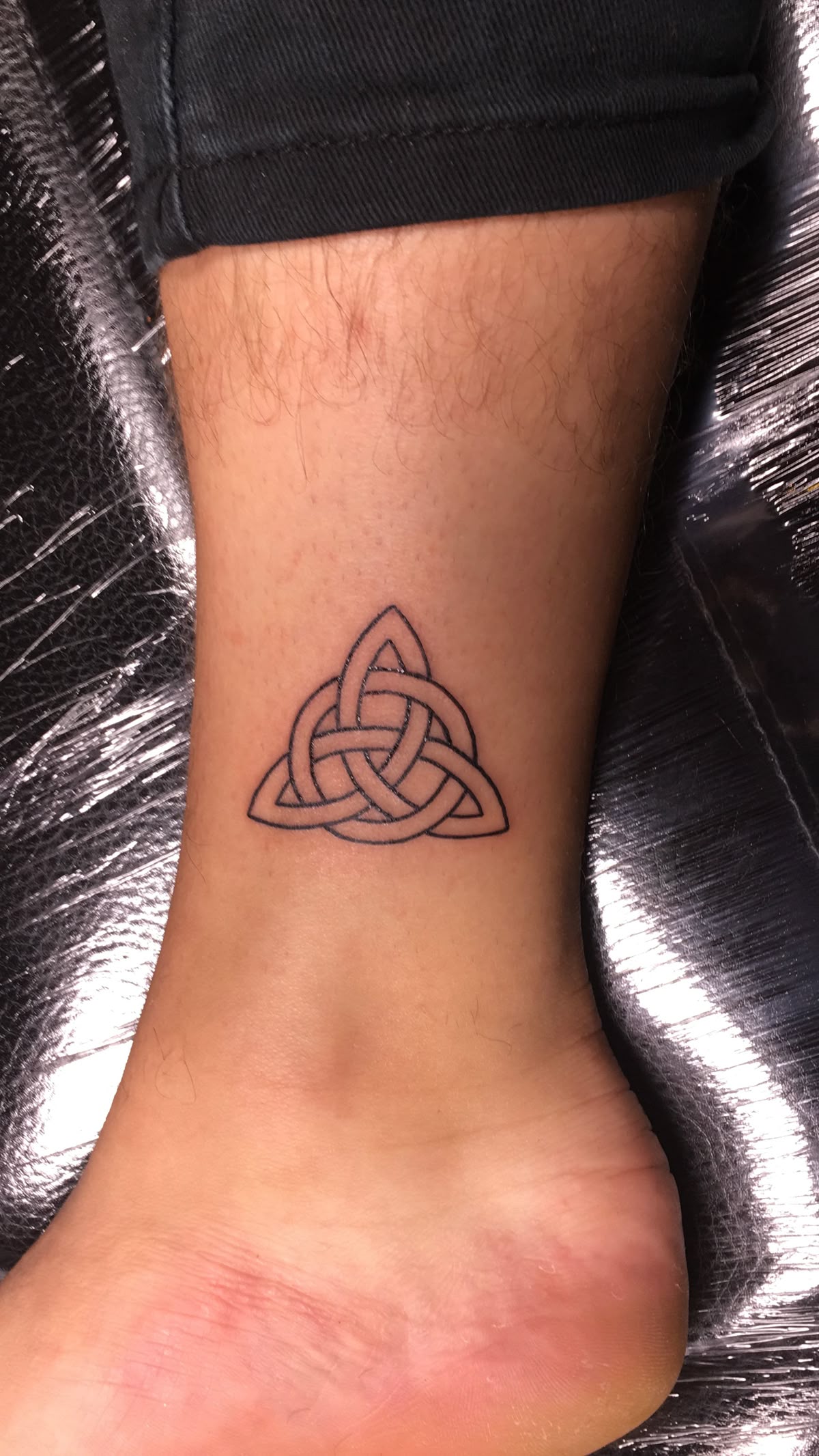 12. Clean-Line Trinity Knot Ankle Tattoo