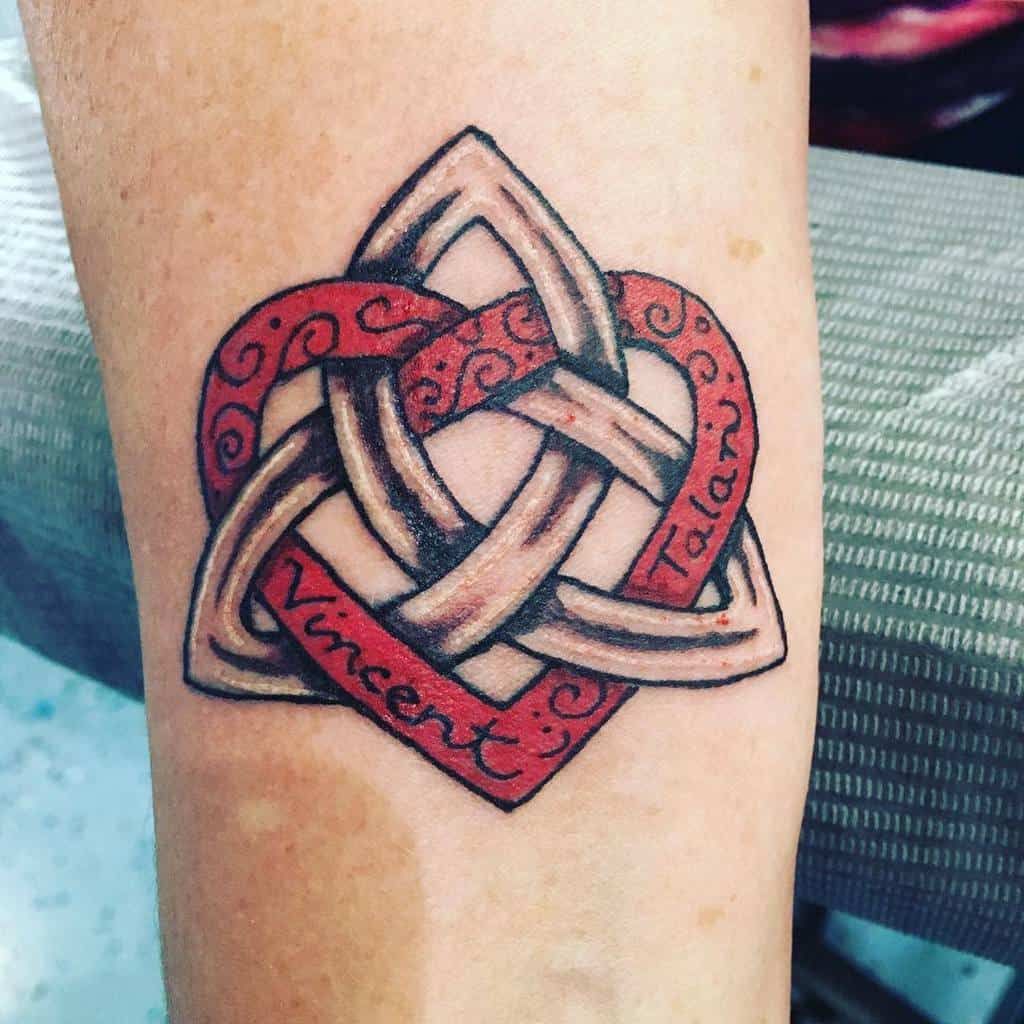 Choosing a design like this turns the knot into a living story. It’s great for anyone wanting a tattoo that blends symbolic meaning with personal details. Just be sure to pick an artist with strong lettering skills, since clean script makes all the difference.