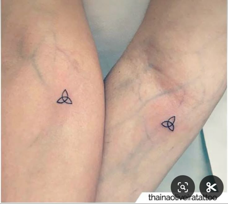 Tiny matching Trinity knots can feel like little whispers of connection—subtle, thoughtful, and full of quiet meaning. These petite designs sit gently on the inner arms, giving off a soft and sweet energy that’s perfect for a sister bond, a mother-daughter moment, or even two close friends marking a shared chapter.