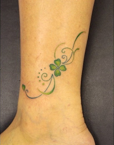 This ankle design has such a lighthearted, almost storybook feel. The tiny green clover sits at the center of those swirly vine details like a little spark of good fortune caught in motion. It feels youthful, breezy, and just a bit playful without crossing into anything childish. I love how the scrolling lines frame the clover instead of overpowering it, giving the tattoo more movement and personality than a simple standalone symbol. For women who want ideas that feel decorative and feminine, this one has a lovely charm. It’s a sweet reminder that a tattoo can be both meaningful and pretty, and sometimes that’s exactly the magic you want.