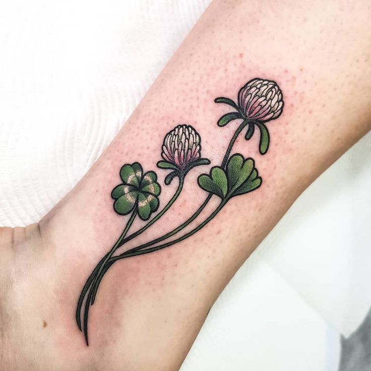 4. Traditional Clover and Daisy Tattoo