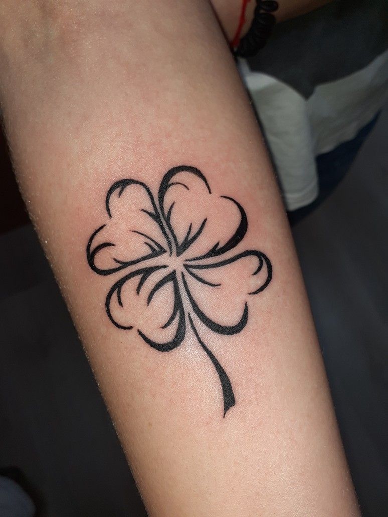 This one has attitude, plain and simple. The sweeping black curves create a clover that feels almost graphic, like a symbol pulled from a vintage poster or sketched in one confident motion. It has a dramatic, high-contrast look that reads more statement piece than delicate charm, and honestly, that’s what makes it so fun. There’s a little edge to it, a little swagger. The oversized petal flow gives the 4-leaf form more movement than a standard clover tattoo, so it feels alive rather than static. If you’ve been looking for ideas that are bold, striking, and not remotely timid, this black clover absolutely delivers.