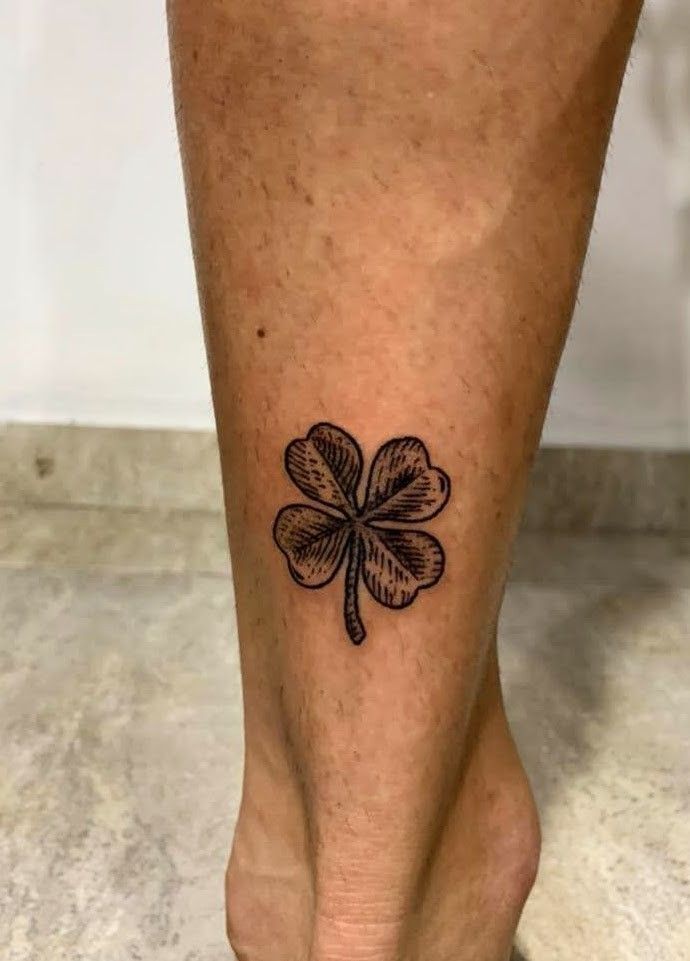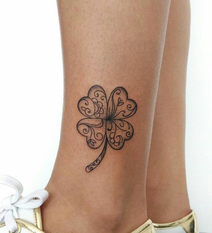 This clover tattoo feels like a little piece of lace drawn directly onto the skin. The swirling details inside each petal give it a soft, decorative finish that feels feminine, polished, and just a bit romantic without going sugary. I love how the shape stays true to a classic 4-leaf clover, but the delicate scrollwork turns it into something more artistic and personal. It has that graceful, slightly dressy energy that makes even a simple ankle tattoo feel elevated. For women who want clover tattoo ideas with meaning but also a more refined design sensibility, this one has such a lovely balance of charm and elegance.