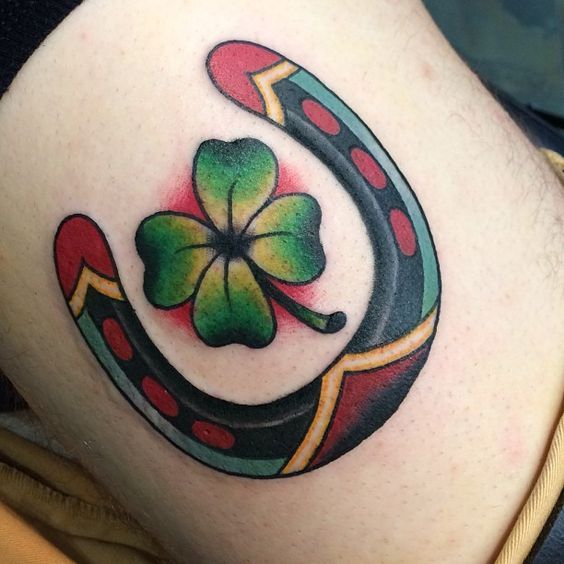 12. Horseshoe and Lucky Clover Tattoo