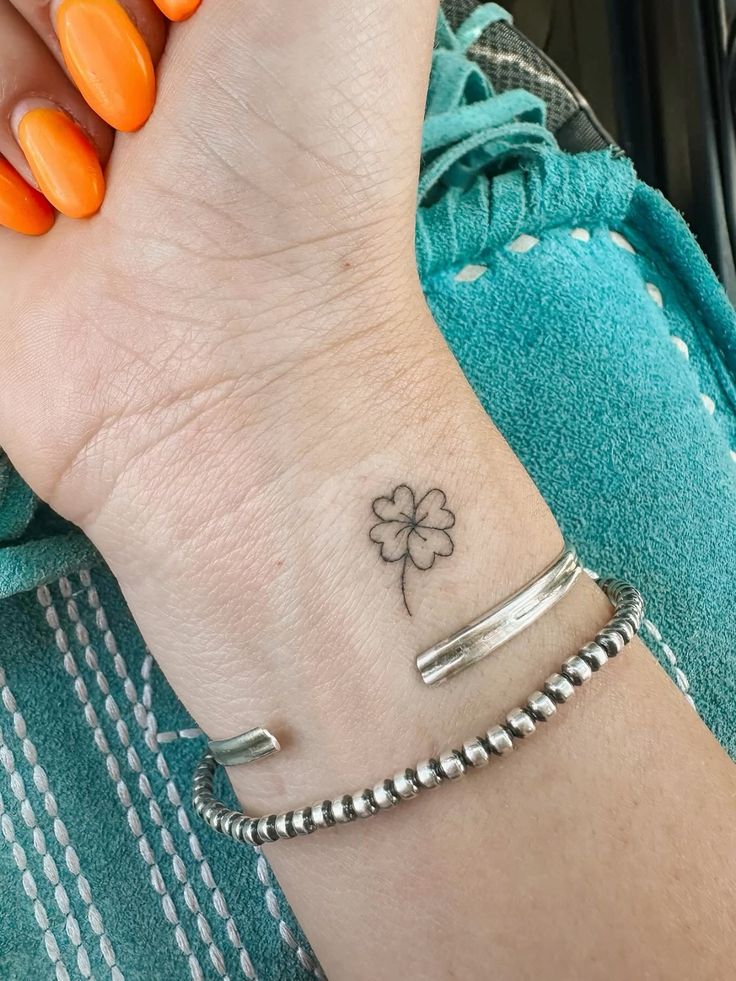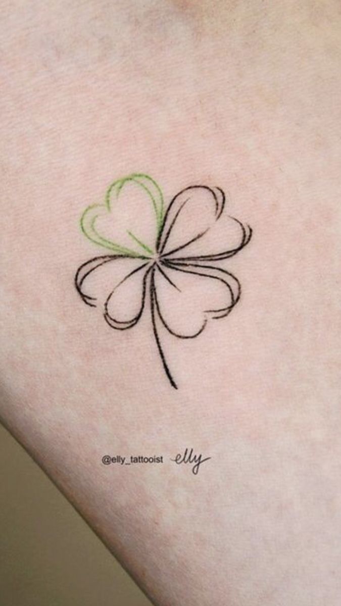 This tattoo is such a pretty example of how a fine-line approach can completely change the mood of a classic symbol. The open petal outlines keep the clover light and delicate, while that single green leaf adds just enough contrast to make the design feel clever and intentional. It’s minimal, yes, but not boring for a second. There’s a softness here that feels a little artistic, a little airy, and very wearable. For women who like Fine line four-leaf or more minimalist ideas, this one has that modern, easy elegance that never feels forced.