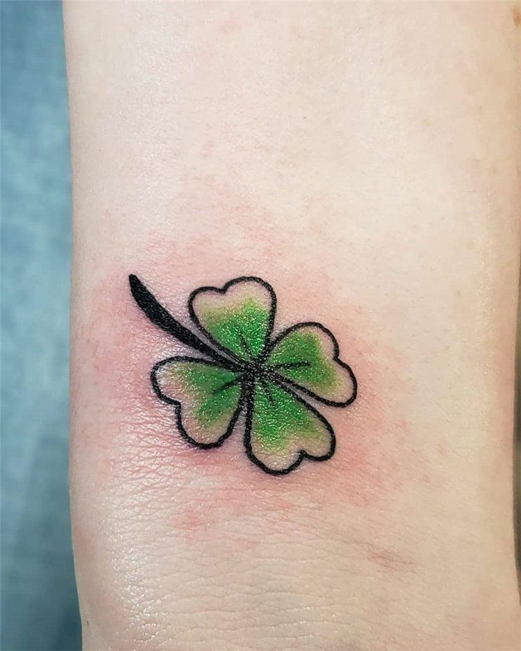 This is such a straightforward, no-nonsense take on the classic clover. The clean green fill, soft outline, and traditional little stem give it that instantly recognizable Lucky symbol appeal without any extra decoration. It feels honest and uncomplicated, which is part of its charm. While a lot of clover tattoo ideas lean soft or feminine, this one has a more universal look that works beautifully for men and for women who prefer simpler body art. It almost feels like a charm stamped onto the hand—subtle, personal, and easy to wear every day. Sometimes the best design really is the one that keeps things clean.