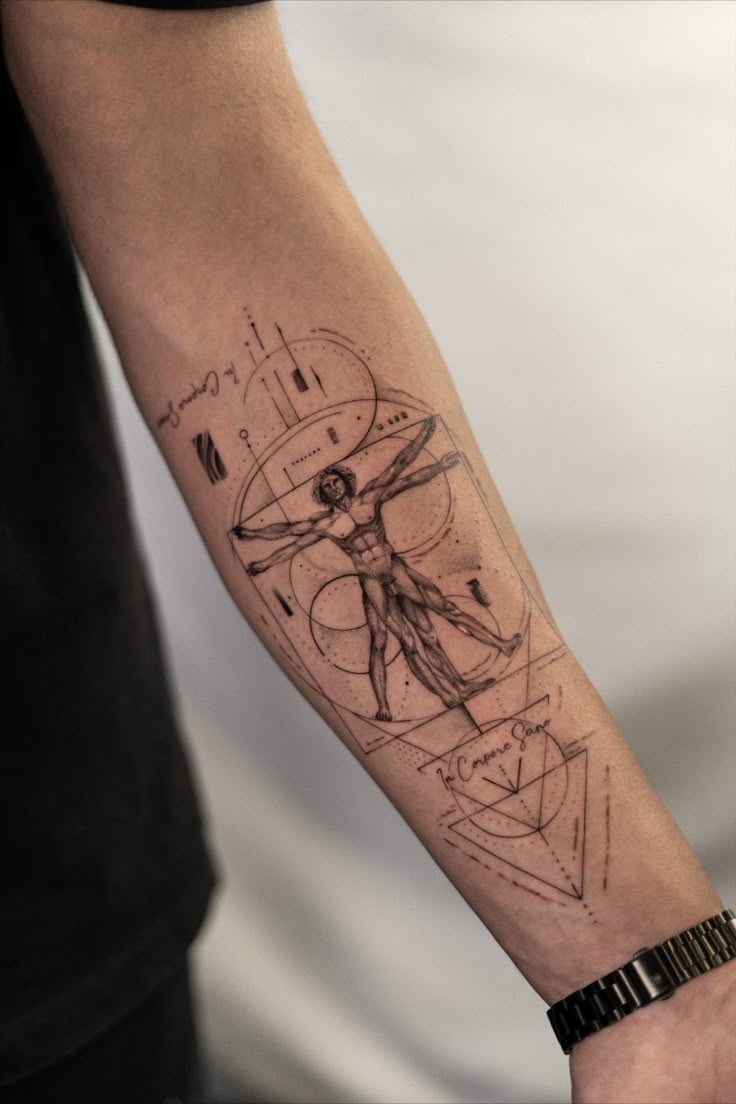2. Vitruvian Geometry Forearm Tattoo