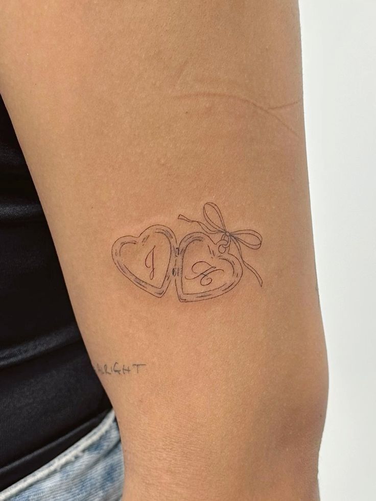 If you are waiting for a sign to get a small sentimental tattoo, this might be it. Designs like this work best when kept simple: two hearts, initials, maybe a tiny bow, and not much else. The upper arm, inner arm, wrist, or ankle would all suit the shape. Because initials are personal, check the stencil carefully before the needle starts, especially the letter style. This is one of those minimalist tattoos that feels like jewelry — soft, private, and quietly stylish.