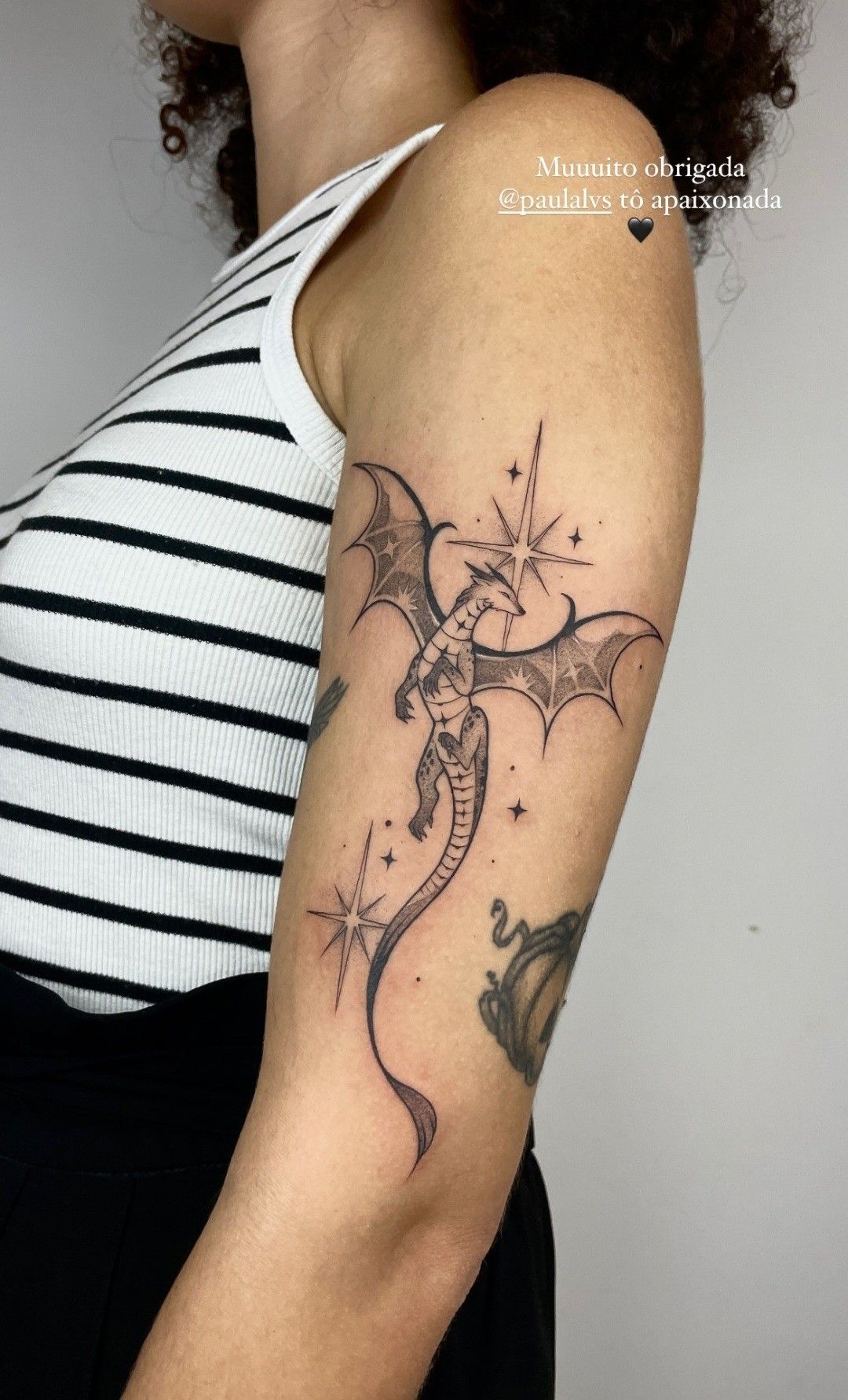 What makes this design special is the way it uses negative space. The wings are open and airy, the body has enough detail to feel textured, and the stars add sparkle without clutter. It is a great arm tattoo for women or men who want something unique but still refined. Ask for soft shading only where it helps create depth, especially in the wings and tail. This is the kind of tattoo that looks amazing with simple black outfits, silver hoops, and a confident little smirk.