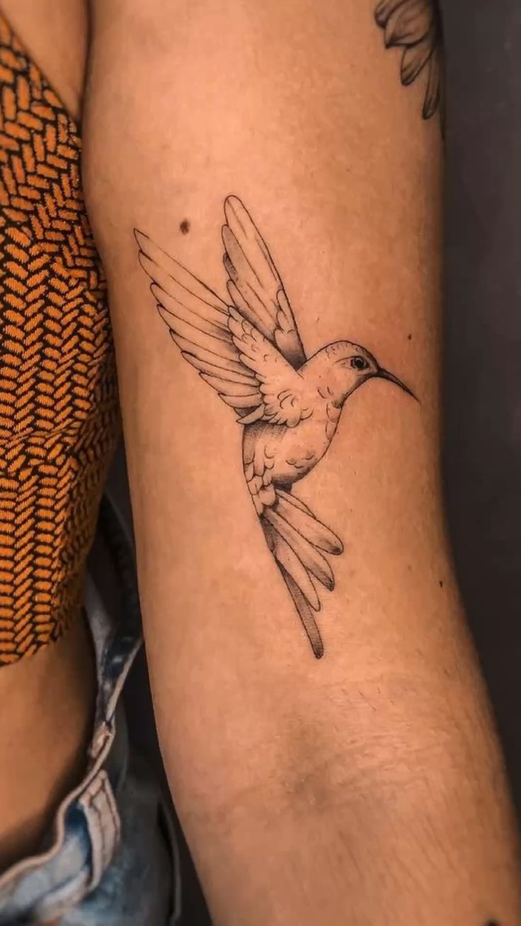 The inner arm gives this design a softer attitude than a shoulder or outer forearm placement. It feels personal, almost like a quiet note to yourself. This works well if you want something visible only when you choose, especially with short sleeves or relaxed summer outfits. It is also a good comparison point if you are choosing between bird tattoos: a dove feels calmer and more symbolic, while a hummingbird feels quicker and more playful. Choose the one that matches the message you want your skin to carry.