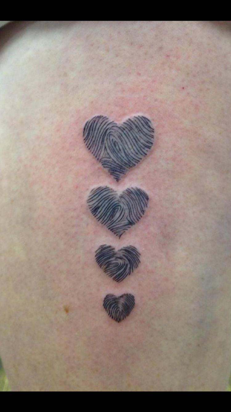 14. Four Hearts Family Fingerprint Tattoo