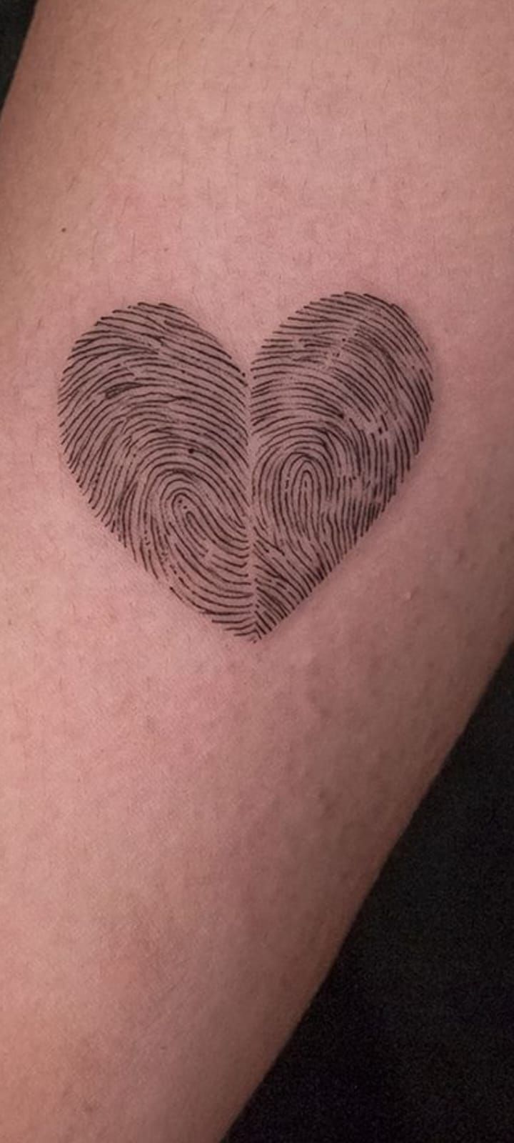 This tiny fingerprint heart is proof that something small can still feel incredibly intimate. It has that lovely secret-keeper energy, like a private reminder tucked just under the skin for you and maybe one other person to understand. The fine lines and miniature size make it feel delicate, modern, and a little bit chic without losing any emotional meaning. If bigger tattoos feel like too much commitment visually, this kind of piece keeps everything soft and understated. It’s one of those fingerprint tattoo ideas that feels easy to live with and still rich with feeling, especially if your style leans more quiet luxury than dramatic statement.