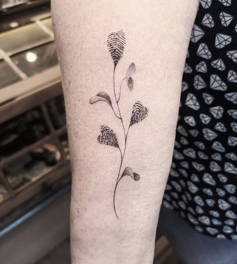 This design feels airy, graceful, and a little poetic, like something you’d choose during a season when you want your tattoo to mean growth as much as love. Instead of turning fingerprints into a traditional heart, this piece lets them bloom into a delicate botanical shape, and that twist gives it such a fresh, artistic mood. It has a softer emotional language—less obvious, more quietly beautiful. You look at it and think of healing, renewal, and the kind of love that keeps evolving. For anyone drawn to fingerprint tattoo ideas that feel elegant rather than overly literal, this is one of those unique flower concepts that manages to be sentimental and stylish at the same time.